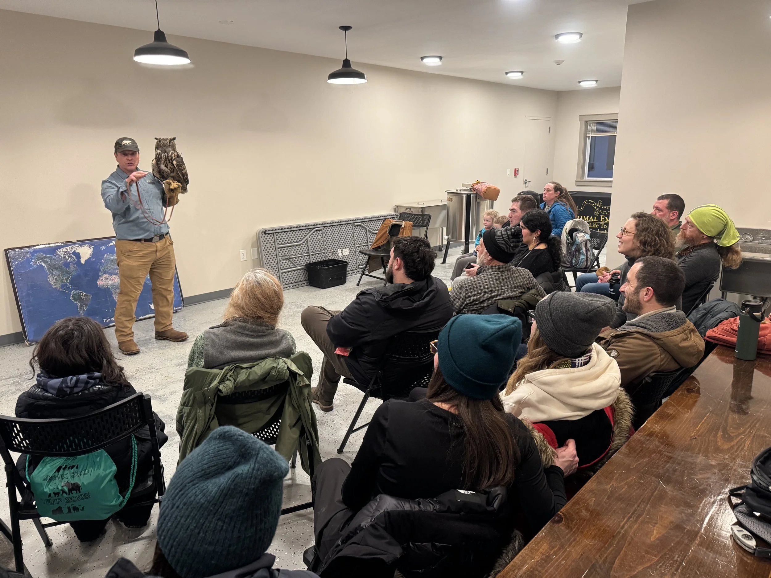 We had a packed house for our live owl workshop with Chris from Animal Embassy at our Tilly Foster Farm Owl Prowl last night! Chris provided some expert background on owl ecology before we headed into the forest to search for owls. Tait from Bedford Audubon led the group, as he used to different calls in hopes of a response. Several times, Tait’s calls sounded like a real owl, and fooled a number of us. The weather held and the temperature was mild. We didn’t see or hear any wild owls, but we had a great group, gained some knowledge, learned more about the work with Tilly Foster Farm’s Reforestation Project, and many wanted to get more involved. A nest box build is now in the works, and we hope to have them all installed on the property before the end of the month. It was another successful event for S2S and @CCE at #TFF - our community is growing and we’re just getting started!